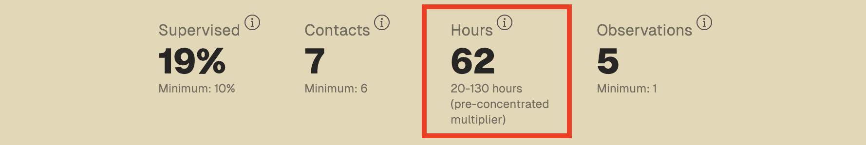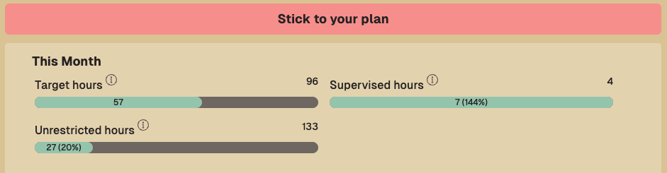 I know this approach isn't perfect, but I've prototyped many different ways of displaying this information. After trialing this with users, this approach has the lowest opportunity for confusion. More than anything, I do not want users to think they are closer to finishing than they are. However, I am open to feedback. If you have any ideas on how to improve this, please provide feedback by clicking the link below. And if you haven't tried it yet, please sign up for BCBA Hour Tracker.